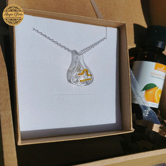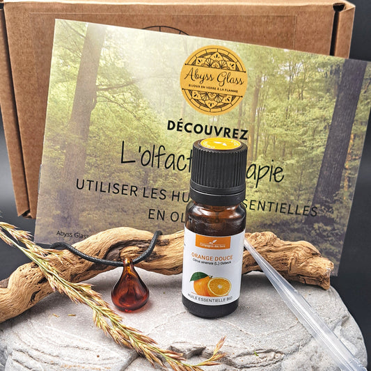 Le pendentif d'olfacto-thérapie est très beau, et je ne doute pas de son utilité ! Le coffret est complet (pipette, huile essentielle, notice) et Céline (et/ou équipe de Céline) est très réactive selon les problématiques rencontrées au cours de l'achat (achat en double par inadvertance). La seule amélioration que je vois (et c'est vraiment du chipotage), ce serait de réduire le format du prospectus Abyss Glass pour qu'il rentre parfaitement dans les boîtes/coffrets). Bref, de la transparence, de la qualité, de l'esthétique, on adore et on soutient !