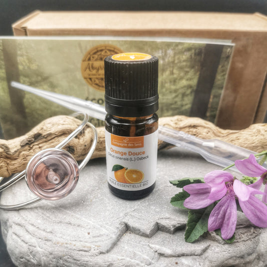 Très contente de mon achat coffret + pendentif +huile essentielle à base d'orange contre le stress...