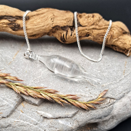 Le pendentif d'olfacto-thérapie est très beau, et je ne doute pas de son utilité ! Le coffret est complet (pipette, huile essentielle, notice) et Céline (et/ou équipe de Céline) est très réactive selon les problématiques rencontrées au cours de l'achat (achat en double par inadvertance). La seule amélioration que je vois (et c'est vraiment du chipotage), ce serait de réduire le format du prospectus Abyss Glass pour qu'il rentre parfaitement dans les boîtes/coffrets). Bref, de la transparence, de la qualité, de l'esthétique, on adore et on soutient !