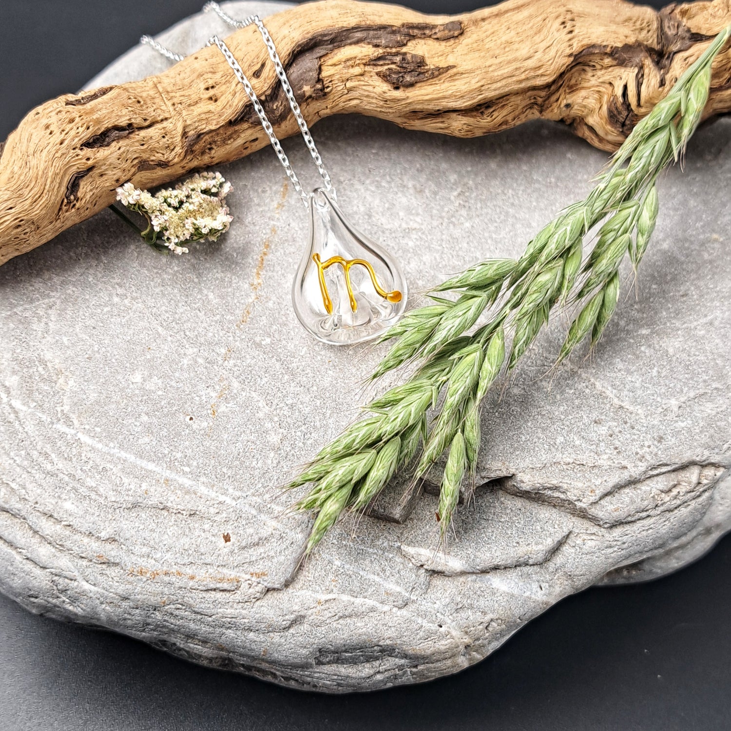 Je vous propose de personnaliser votre pendentif avec votre signe astrologique. Le signe est dessiné en verre de couleur directement sur le pendentif en verre soufflé.