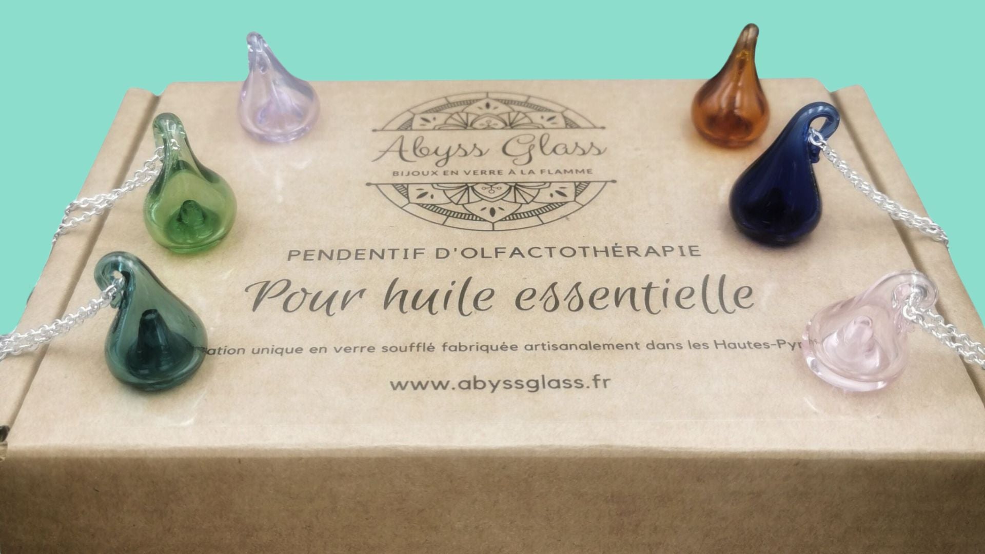 - Pendentif d'Olfactothérapie en Verre Soufflé : Choisissez votre variante de pendentif, qui sera fabriqué à la commande. 🙂