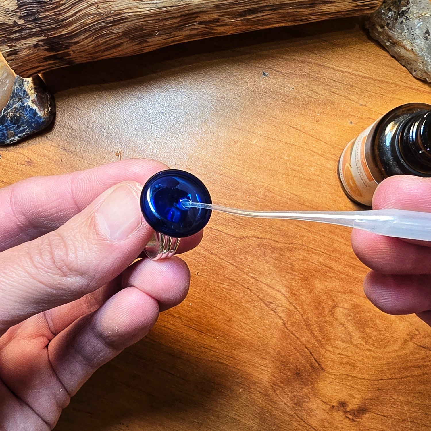 Vous cherchez un moyen unique de vous reconnecter à vous-même tout en portant un bijou unique ? Nos bagues d'olfactothérapie en verre soufflé allient beauté artisanale et bienfaits aromathérapeutiques. Chaque bague est conçue pour vous permettre d'intégrer les huiles essentielles à votre quotidien, tout en ajoutant une touche élégante à votre style.