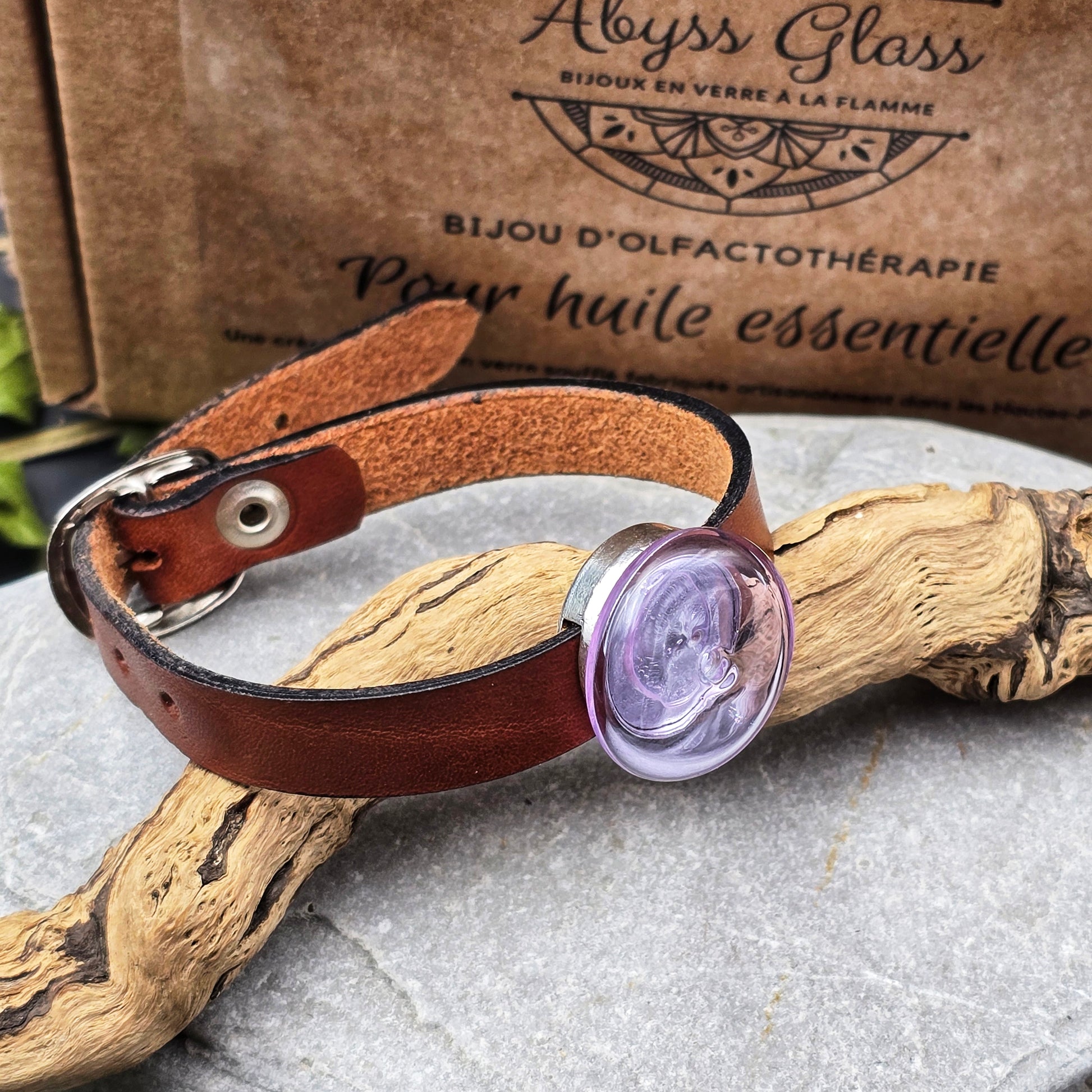 Profitez des vertues des huiles essentielles tout au long de la journée. Ce bracelet en verre soufflé vous permet de transporter vos huiles essentielles préférées.